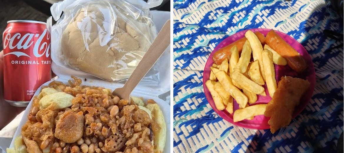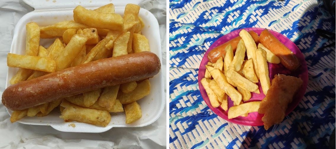 Proper English chippy, good selection on the menu, chunky cod with not too much batter, great chips, the chicken bites are lovely. Ordered a cod, 2 sausages, large chips, kids chicken bite meal, peas and gravy for myself and 3 lads. We were all absolutely stuffed. Picnic blanket and plastic plates not included! You can phone ahead and order. Great chippy.